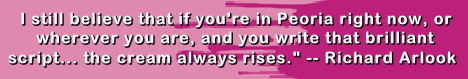 So whether you’re working on a TV pilot or a feature spec, remember to bring the uniqueness, bring the voice. It has to be different enough to stand out from the pack. Competency is no longer good enough. Safeties off, boys and girls! Go get ‘em.