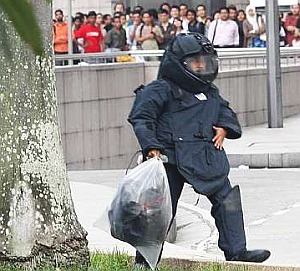 WRITER BOMBS IN ATTEMPT TO GET SCRIPT READ. Don’t do this! (Beverly Hills) A writer desperate to get a movie script read suffered the ultimate rejection Thursday when police blew up a briefcase he said contained the screenplay after an agent refused to read it, police said. The bizarre story was set in Beverly Hills, where a man visited the office of a literary agent and left behind a briefcase that he said contained a computer, police Sgt. Brad Cornelius said. The man left instructions for it to be delivered to someone at the business, who told another person in the office, “This guy’s been kind of pestering me to read his stuff,” and said he neither asked for nor wanted the briefcase, Cornelius said. A security guard took the case into an alley, and a bomb squad was sent to investigate. Officials sealed off one square block and evacuated dozens of people from businesses on nearby Rodeo Drive and Santa Monica Boulevard before blowing open the briefcase, which contained no explosives. Police detained the man suspected of leaving the briefcase and were questioning him, Cornelius said. His name and other details were not immediately released. (AP)